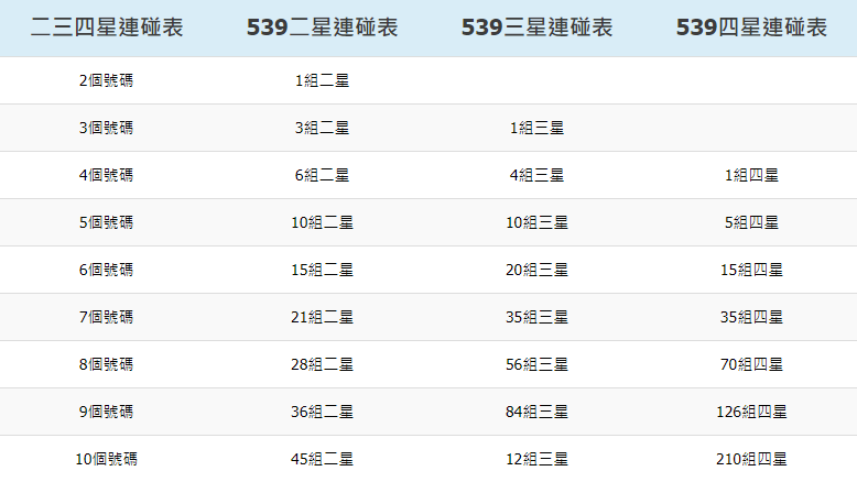 539連碰計算是利用數學的排列組合的方式算出來的,